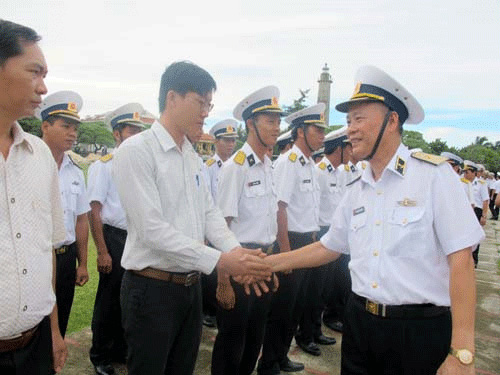 越南人民军海军军种副参谋长阮文俭准都督代表各位军官和水手对完成任务后踏上祖国的岛屿表示高兴。阮文俭准都督祝贺岛上军民这些年来所取得的成就,并向他们通知了本次出差的结果。