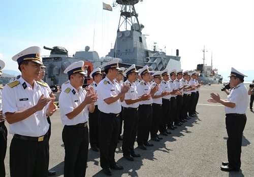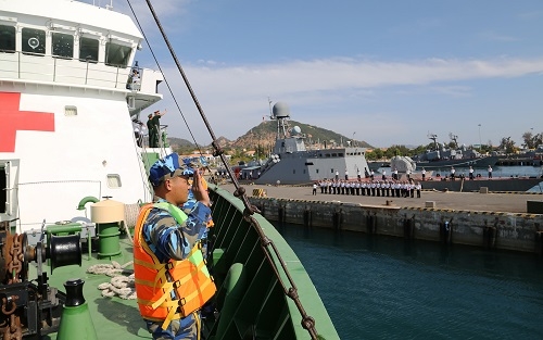 | 海军第4区的官兵欢送561号医院船离开(图片来源:人民军队报) |