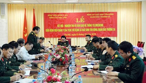 人民军队:12月23日下午,在河内,总后勤局354军医院举行了连接354军医院与东生存岛的远程医疗系统(Telemedicine)验收交接仪式。总后勤局副主任杜能静少将主持仪式。
