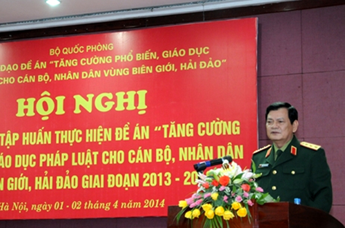 人民军队记者PV报道:国防部4月1日在河内举行会议,开展2013-2016年阶段“加大对边界海岛干部、人民宣传教育法律知识力度”提案(以下为提案)。越共中央委员、中央军委常务委员、提案指导委员会主任出席并指导会议。