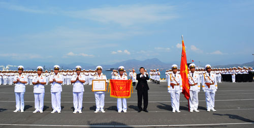 人民军队记者阮文钟报道:5月2日,在庆和省金兰军港,海军军种隆重举行越南人民海军成立60周年(1975.5.7-2015.5.7)庆典和第二次荣获人民武装力量英雄称号授证仪式。