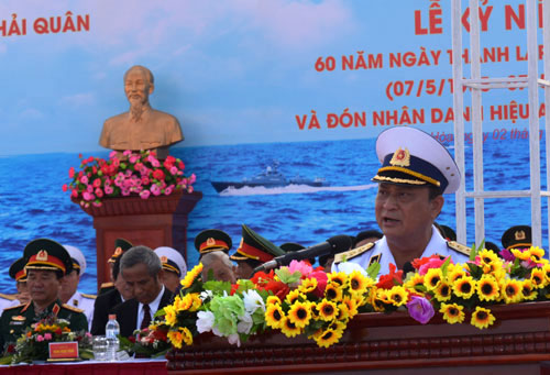 越南国防部副部长、海军军种司令阮文献都督在仪式上发表讲话时,回顾了越南人民军海军的巨大战功。