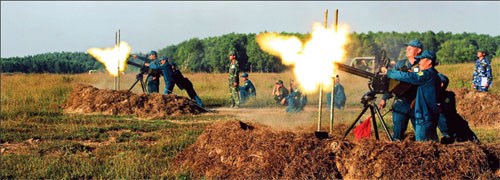 这是职能机构对代表第五、七、九军区,三、四军团和海军军种34个防空炮队、高射机枪队、民兵队进行的全方位考核。演习主要项目为:武器交接工作、白天和夜间战斗、占领阵地和战斗开展。演练项目接近实际情况。参演单位圆满完成既定目标,确保人力和物力的绝对安全。《人民军队报》谨介绍这次演习的组图: