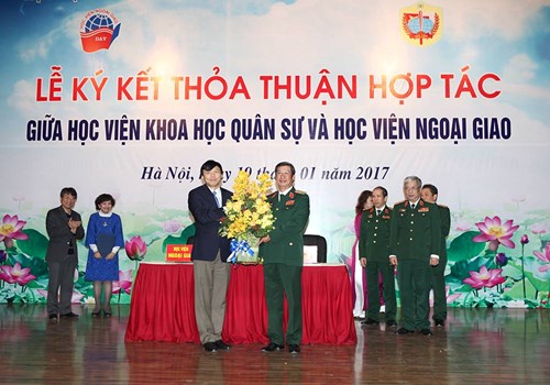 人民军队:在越共中央委员、中央军委常务委员、国防部副部长阮志咏上将和外交部副部长邓廷贵大使的见证下,军事科学院与外交学院1月19日下午在河内举行合作协议签署仪式。
