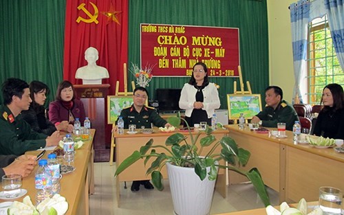 工作团走访那锐村阮文青先生家庭。阮文青以前为总技术局车辆机械局。他已献土地,用于建设纪念馆和胡伯伯与车辆机械部队遗迹区。纪念馆和胡伯伯与车辆机械部队遗迹区工程于2010年9月落成。自从落成开放后,该工程已发挥其效果,有助于为车辆机械官兵、当地部队、武装力量及人民进行传统教育。