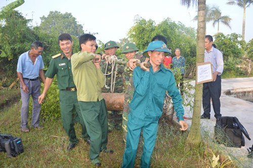 人民军队:10月14日,在宁平省金山县恩和乡,宁平省军事指挥部已对一枚重500磅的炸弹进行技术处理并成功转移销毁。