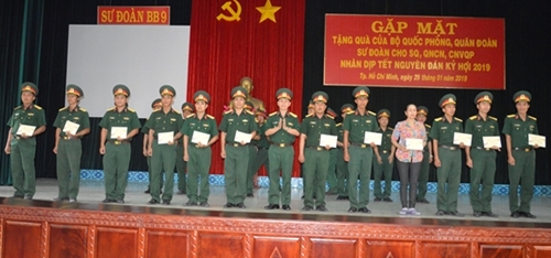 9师领导、指挥员向单位贫困军人赠送春节礼物(图片来源:人民军队报)