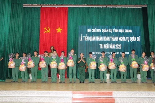 *后江省军事指挥部为44名退伍义务兵举行2020年服役满期战士欢送仪式。