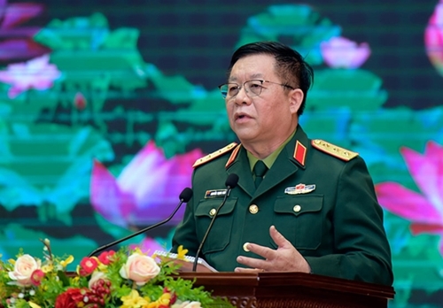 阮仲义上将出席研讨会并发表指导性讲话(图片来源:人民军队报) |