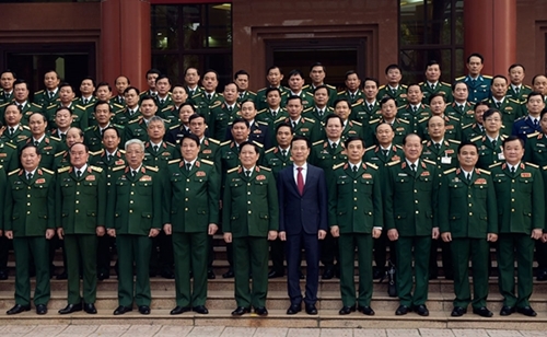 人民军队:1月24日,在河内,中央军委与出席越南共产党第十三次全国代表大会(越共十三大)的军队代表举行见面会。