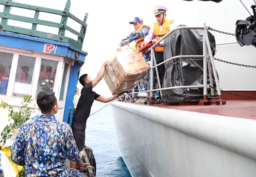 值此之际,海军第三区司令部工作团将岛上军民过年所需的粮食、蔬菜、药品、医疗物资等年货运送至岛上。这是国防部、海军军种、海军第三区司令部送给在昆果和李山两座岛屿上执行任务的官兵和地方政府、武装力量和人民的新年礼物。(完)