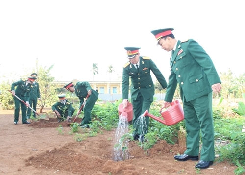 得乐省军事指挥部官兵在军营里植树(图片来源:人民军队报) |
