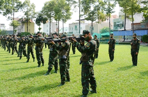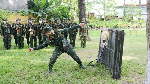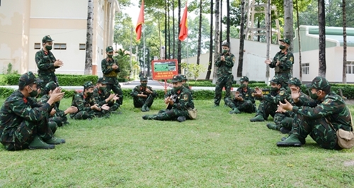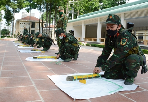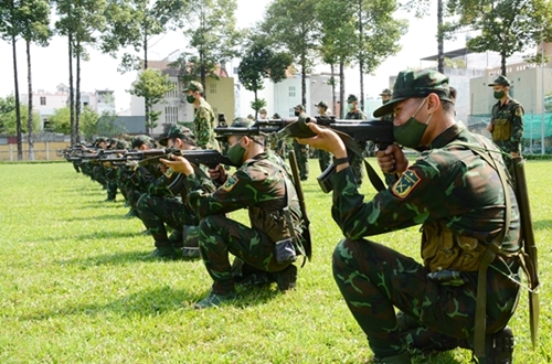 人民军队:胡志明市司令部嘉定团新兵既做好新冠肺炎疫情防控工作,又加强训练,锻炼过硬政治本领,熟练技战术和动作,力争在各训练科目检查上获得“优秀新兵”称号。