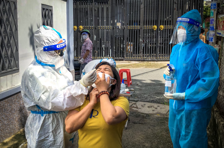 军队南方预防医学院医务人员为民众进行取样检测(图片来源:tapchiqptd.vn) |