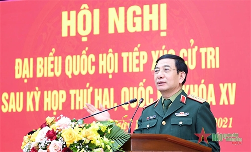 人民军队:11月15日上午,在太原省,越共中央政治局委员、中央军委副书记、国防部部长、第十五届国会代表潘文江大将在第十五届国会第二次会议召开后接触了太原省选民。