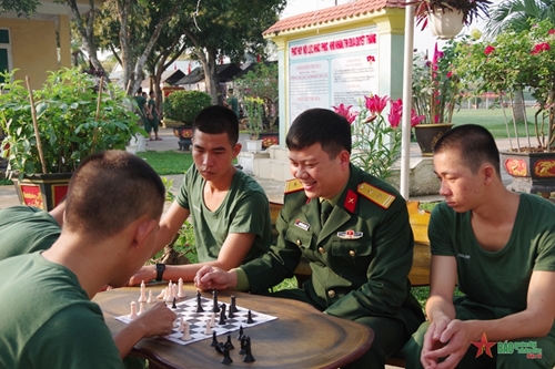 6营9连4排新兵胡识与我们交谈时称道:“鉴于各级干部,尤其是9连政治指导员黎文统少尉的鼓励和支持,我已自信地跨越一切困难”。据悉,新兵胡识是广治省向化县云乔族人。这是胡识第一次离开家乡和亲人,第一次涉足军旅生活,所以对家乡和亲人的思念有时是无可抗拒的。每次训练结束后,胡识经常独自一人坐着。通过与新兵交流活动,了解到胡识的心思,黎文统少尉经常慰问和鼓励胡识,让他尽快融入新环境。