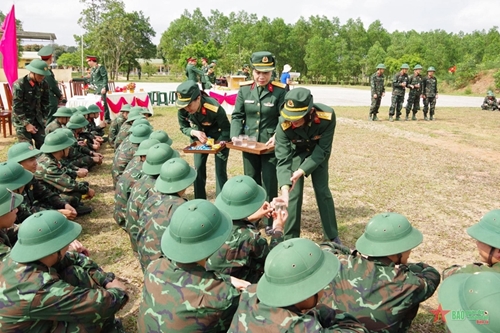据悉,与做好思想工作的同时,19团领导和指挥员还重视以身作则。 志愿报名参军、优秀训练等榜样都得到本团在全单位的推广。6营12连新兵阮明忍是一个生动例子,他虽然毕业于顺化农林大学,但已经志愿报名参军。参军后,每逢有空闲时间,阮明忍都争取时间指引愿意完成军事义务后继续备考大学的同志,与他们一起复习功课。还是4营6排2连的黎光辉新兵,他毕业于顺化大学旅游学校后有了一份收入稳定的工作。参军后,黎光辉成为单位各项运动中的核心人物。当看见阮明忍和黎光辉这些典范,单位诸多战士已学习借鉴他们,努力奋斗,在训练和执行任务中不断努力向上。
