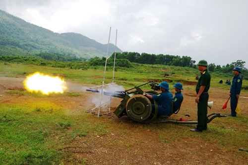 人民军队:刚进入初夏,阳光就已经给大地带来燥热难当的天气。在位于河内市嘉林县骄骑乡的训练场上,民兵干部、战士正在集中训练武术内容。