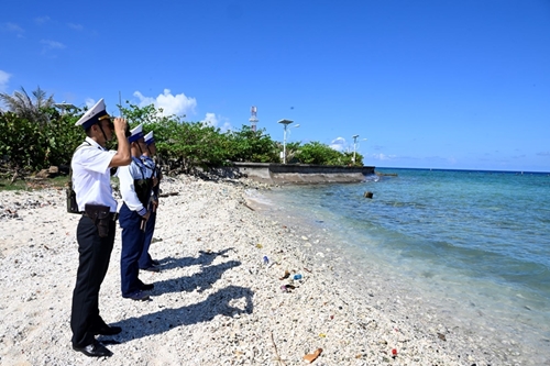 顶着烈日,长沙部队的巡逻组还严格执行巡逻任务,紧跟着海上活动,旨在及时发现和处理侵犯祖国海域和空域主权的行为,同时确保渔民和船舶在越南拥有主权海域捕捞作业的绝对安全。
