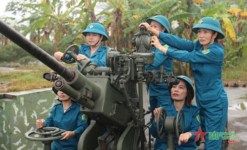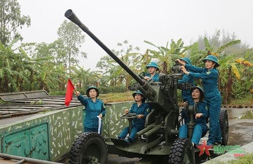 清晨的大雨使地面都淋湿的,37毫米高炮场的许多工事仍被淹没,但在训练场上,四连的“方形帽徽” 女民兵依然热情高涨,全新投入反空降演练。女民兵们声音大、动作快速、精准,协调配合控制成吨不断变化射程以抓捕目标的大炮。四连连长范氏香离在与我们聊天时说:“恶劣天气下的训练虽然很辛苦,但却是炮队锻炼提高水平、作战能力的良好条件,保证单位在发生情况时不陷入被动、措手不及的状态。”