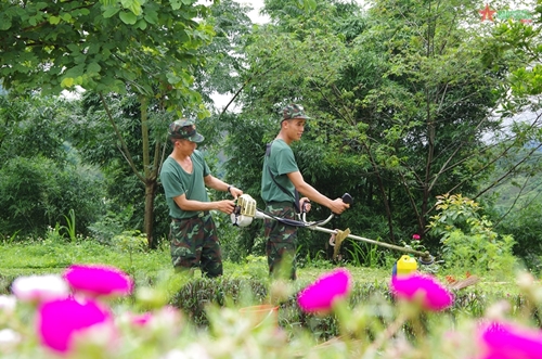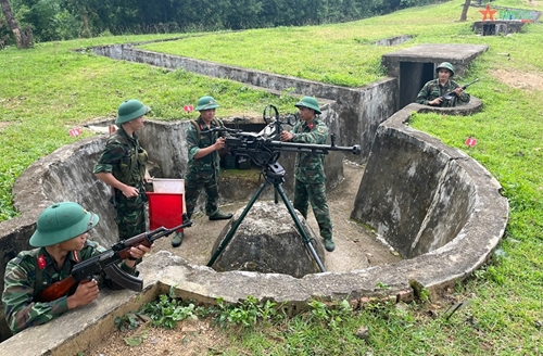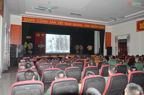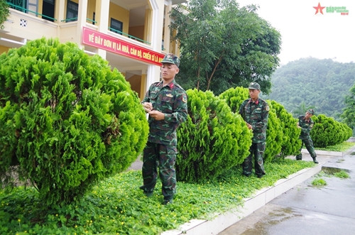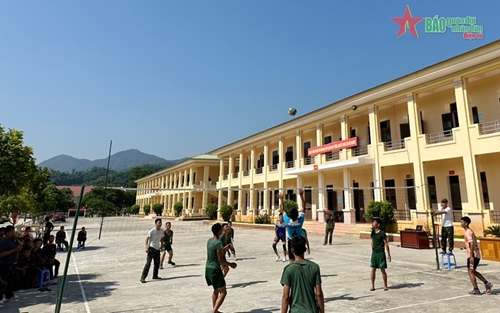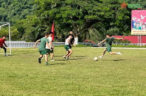 这就是我们九二国庆假期来到奠边省军事指挥部741团1步兵营时的感受。单位门口挂满了红旗和标语,装饰得很漂亮。到里面去,现场气氛热闹,官兵们正在为一连与三连的足球赛加油打气。