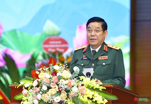 越共中央委员、越南人民军总政治局副主任阮文熊中将在会上发表讲话(图片来源:人民军队报) |