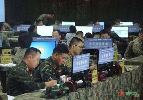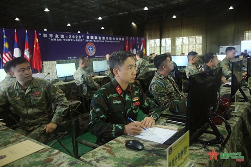 人民军队:连日来,在“和平友谊-2023”多国联合演习的框架内,越南人民军反恐力量在演习指挥所参加所有演习科目。