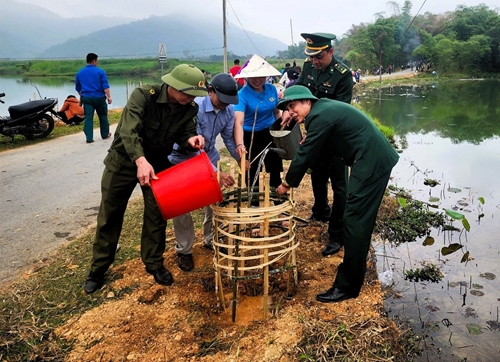 义安省边防部队领导和清昌县领导参加植树活动(图片来源:人民军队报)