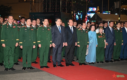 越共中央政治局委员、国会主席陈青敏,越共中央政治局委员、中央军委副书记、国防部长潘文江大将,越共中央政治局委员、胡志明市市委书记阮文年,原越共中央书记处书记、原国家主席张美华,越共中央书记处书记、中央军委常委、越南人民军总政治局主任郑文决上将,越共中央委员、中央军委常委、越南人民军总参谋长、国防部副部长阮新疆大将,越共中央委员、中央军委常委、国防部副部长武明良上将,越共中央委员、国会国防安全委员会主任黎晋进中将,越南人民军总政治局副主任张天苏中将,越南人民军副总参谋长范长山中将,越共中央委员、第七军区司令阮长胜中将,越共中央委员、胡志明市市委副书记、市人委会副主席潘文买等出席活动。