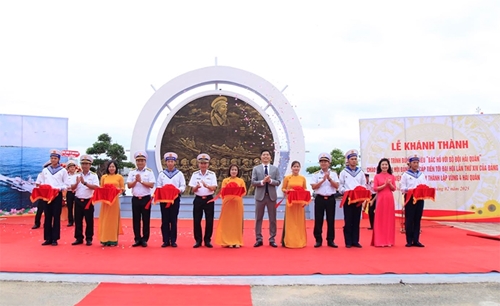 工程以传统和现代相结合,含有深刻的文化意义。工程的亮点是一个直径六米的圆形浮雕,象征着一艘战胜风暴的舰船上的方向盘。浮雕正面中央庄严地悬挂着胡志明主席头戴海军战士帽的塑像,仿佛他老人家在见证与鼓励越南人民海军的发展、成长和建设成为正规化、精锐化、现代化的军队,坚决履行保卫祖国每一寸神圣岛屿和海洋的使命。浮雕背面面向大海,由该单位官兵手绘鼓励海军部队紧握手中枪、牢牢掌好导航舵盘,坚信护海事业一定能胜利。工程两侧有三级台阶平台,平台上有两块珊瑚板,象征着越南对海洋和岛屿主权的肯定和一代又一代海军战士保卫海洋的誓言。