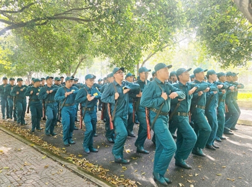 人民军队:早上7时30分,胡志明市第八郡Xom Cui坊军事指挥部的民兵力量已开始进行队列条令训练。在向官兵贯彻训练场的规章制度后,坊军事指挥部部长进行授课,概括介绍了每个动作的要领,同时将理论知识与实践密切相结合,将队员分成小组,进行强化训练。