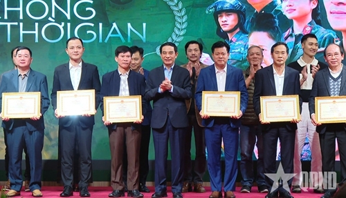 值此之际,潘文江大将向《超越时间》电视剧制作过程中具有优异成绩的集体和个人颁发越南国防部长的荣誉证书,郑文决上将向其他集体和个人颁发总政治局的荣誉证书。(完)