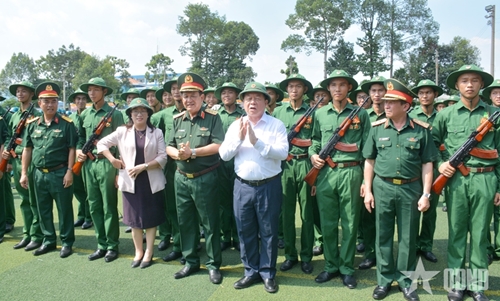 工作团走访慰问正在第七军区军事学校开展训练活动的阅兵、游行方队和在胡志明市第一郡的炮兵部队。