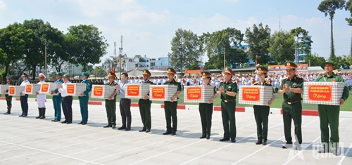 越共中央委员、中央军委常委、国防部副部长武明良上将,越南人民军总政治局副主任张天苏中将,第七军区、34军团、国防部职能机关单位领导、中央部委、行业代表等陪同。