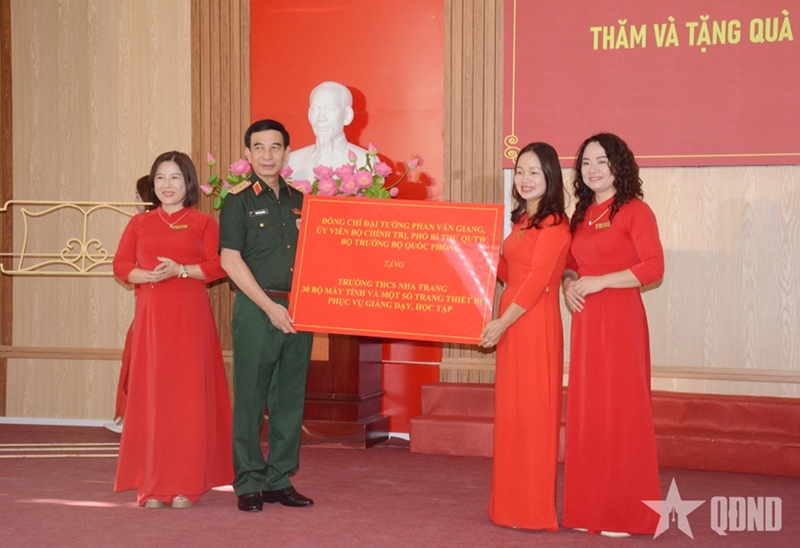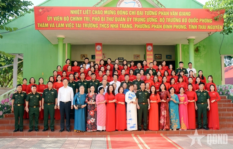 走访芽庄初中和梁玉眷高中时,潘文江大将欣喜且自豪地获悉,两所学校均发扬了光荣传统,一直是太原省教育行业"教好学好"竞赛运动中的标兵,学校的教学声誉与质量得到巩固并不断提高。潘文江大将概括介绍了军队建设发展情况,分享了军民鱼水情,以及当前军队内外教育培训工作面临的机遇与要求。