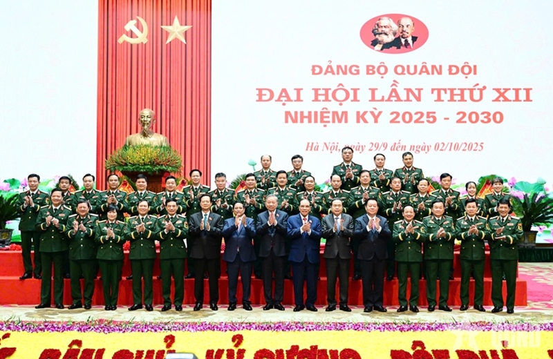 越南党、政府领导和代表们合影(图片来源:人民军队报) |