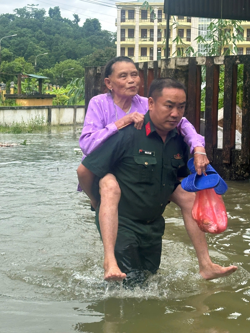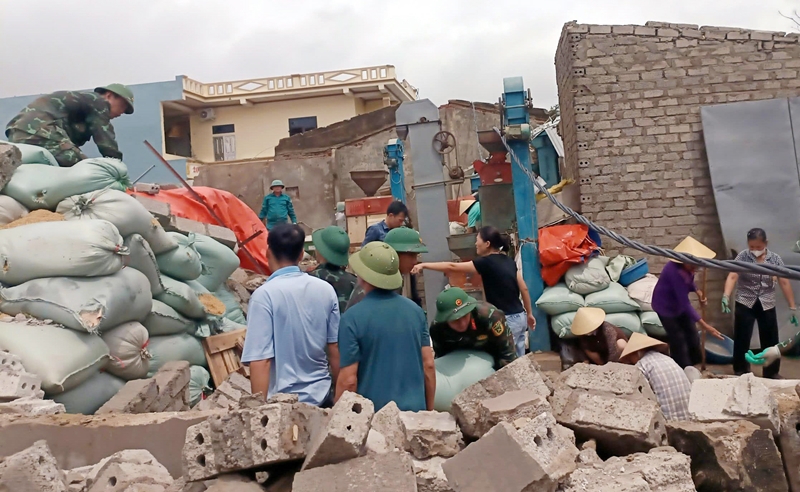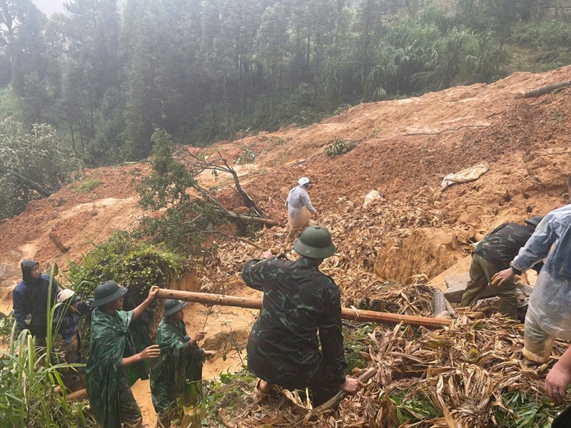 *9月30日,在宁平省归一乡,面对台风导致大量民房屋顶被掀、房屋倒塌,树木横倒,交通阻塞的状况,省军事指挥部调动数千人次的干部战士奔赴关键区域及时支援民众。尽管大雨滂沱,官兵仍冒雨清理环境、帮民众修缮房屋,砍伐清理树木,疏通沟渠,清除滑坡土石,清理倒伏树木保障道路畅通。除灾后处置外,省武装力量继续维持值班备勤力量,准备在大雨引发内涝、山洪时的疏散救援方案。