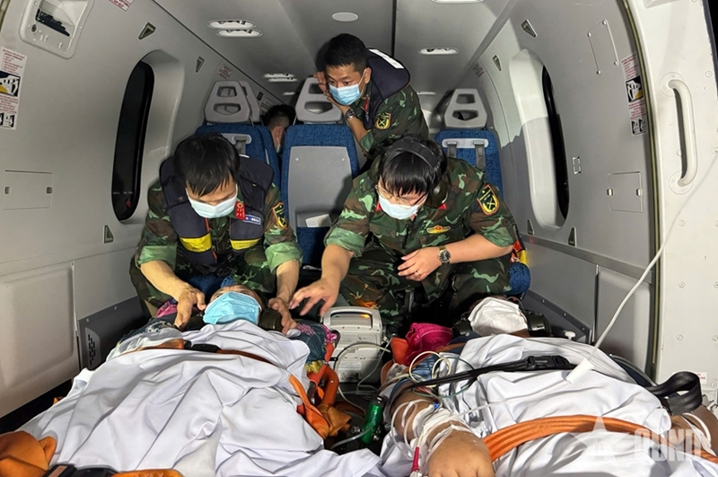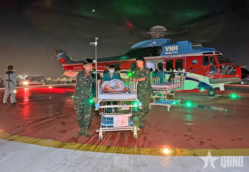 根据国防部的命令,18军团出动了VN-8622号EC-225直升机,并搭载175军医院的空中急救小组,于9月30日16时15分从新山一机场起飞,前往长沙特区。尽管受到台风影响,风力强劲、能见度有限,但飞行小组已勇敢机动,先后在各岛安全降落,接送三名患者。在执行任务过程中,175军医院的空中急救小组依次接近患者,进行初步急救,确保病情稳定后再转运回陆地。