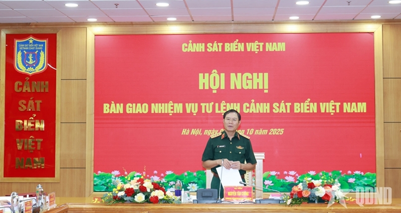 在会议上,黎光道中将将越南海警司令的职责、任务交接给黎廷强少将。