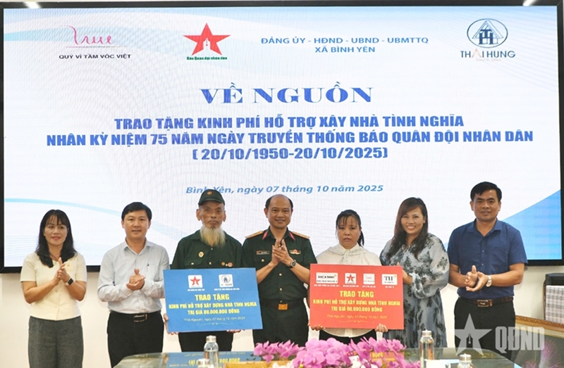 在“寻根之旅”活动框架内,《人民军队报》工作代表团、泰兴贸易股份公司和北亚商业股份银行向喀油村、平安乡地方党委和政权赠送了礼物,并捐赠了8000万越南盾的资助资金,用于为平安乡靠耀村贫困户梁氏娥家庭和Thẩm Rộc村伤残军人阮名春家庭建造“情义屋”。