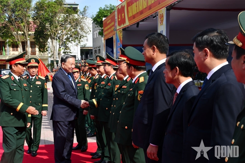 越共中央书记处书记、中央军委常委、越南人民军总政治局主任郑文决大将,越共中央委员,越南国家副主席武氏映春,越共中央委员、政府副总理胡德福,越共中央委员、国会副主席陈光方上将,越共中央委员、中央军委常委、越南人民军总参谋长、国防部副部长阮新疆大将,中央各机关领导,中央军委、国防部领导,地方领导,老挝人民民主共和国军队和地方代表,越南英雄母亲、人民武装力量英雄等代表。