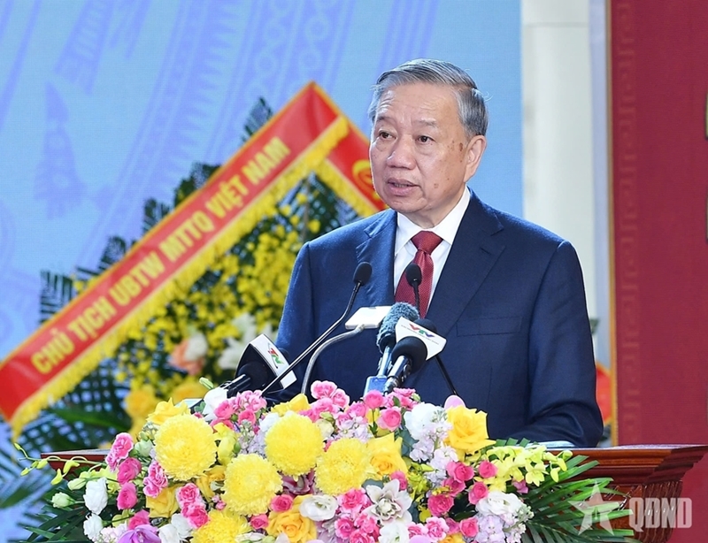 越共中央总书记、中央军委书记苏林出席并发表指导讲话。中央政治局委员、国家主席梁强,中央政治局委员、政府总理范明政,中央政治局委员、国会主席陈青敏等领导送花篮表示祝贺。