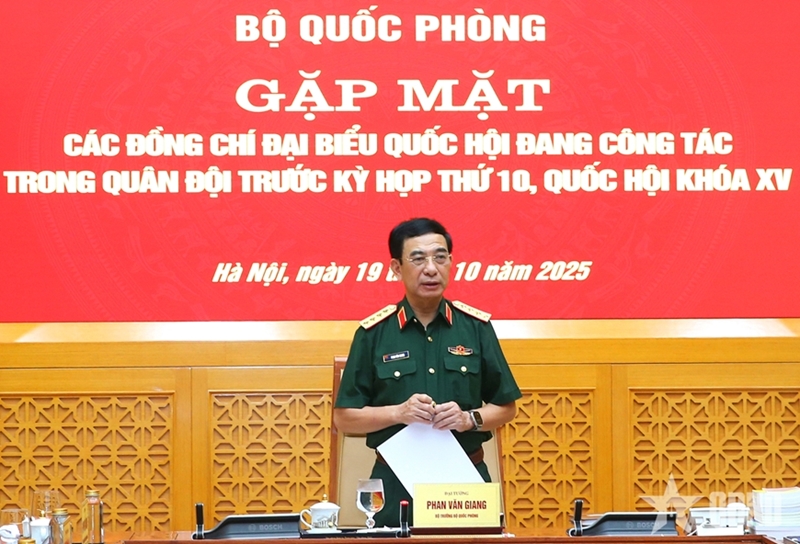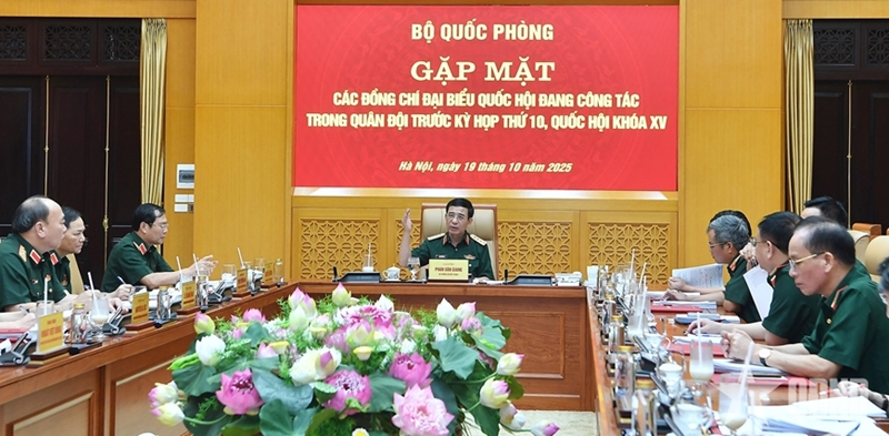 人民军队:10月19日下午,越南国防部在河内举行会见活动,邀请军中国会代表,在第十五届国会第十次会议召开前进行交流。会议由越共中央政治局委员、中央军委副书记、国防部长潘文江大将主持。