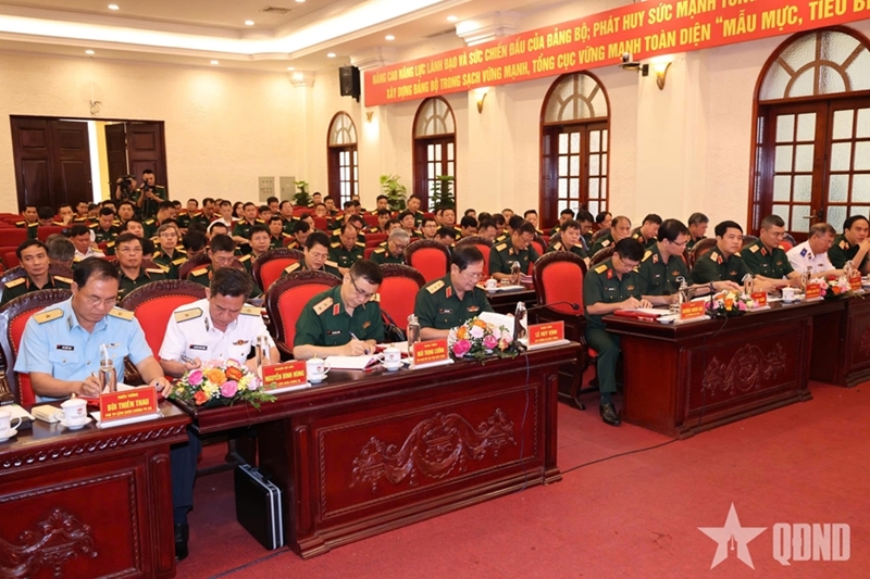 越共中央委员、国防部副部长黎辉咏上将在会议上发表指导讲话(图片来源:人民军队报) |