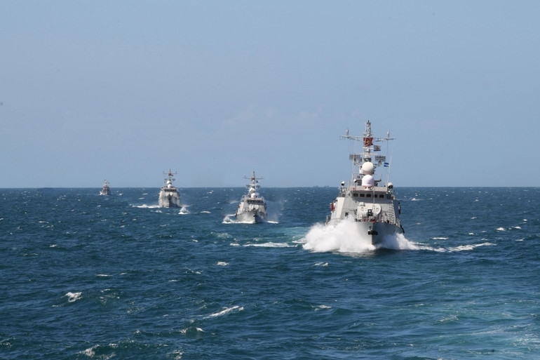 海军第五区各舰艇编队在海上进行训练(图片来源:人民军队报) |