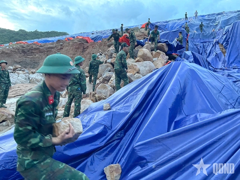 11月18日下午至夜间,部队官兵紧急堆填土袋、加固坝坡、开挖泄洪渠,并配合地方政府对全域进行巡查。因处置及时,坍塌风险得到控制,有力保障了下游居民区安全。