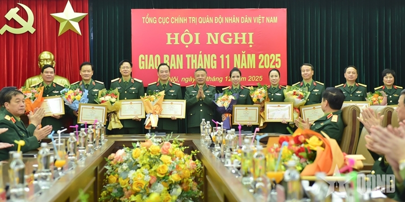 越南人民军总政治局领导向模范集体和个人颁发奖状(图片来源:人民军队报) |