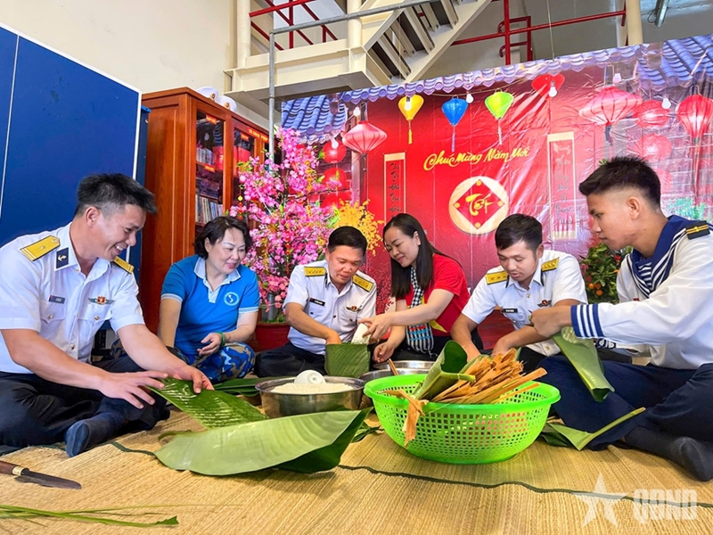 大家齐聚一堂,用从大陆带来的绿豆、猪肉和香蕉叶等食材,包粽子,装饰春节,让远在茫茫大海之上的海上高脚屋官兵们也能感受到大陆的温暖、家乡的爱以及战友们在风头浪尖上的情谊,迎接新的春天!(完)