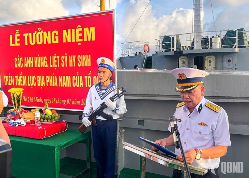 在庄严肃穆的气氛中,海军第二区政治副主任、二号工作团长黎鸿光大校诵读悼念词,向各位英雄烈士表示无限敬意和哀悼,向在执行捍卫祖国海洋岛屿和南方大陆架主权任务中英勇牺牲的官兵家属表示崇高的敬意和深切的感恩。