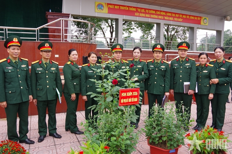 与上述比赛内容并行的还有新春花卉比赛,吸引了全校各单位和妇女协会的积极参与。所有花盆和小景观都是由学员和妇女会员亲手栽培和照料的,展现了他们的巧妙、细心以及对劳动的热爱。尤其是,许多创新作品由塑料瓶、金属罐、木材碎片等回收材料制成,既增添美感,又提高环保意识,并在军队环境中推广绿色、节约的生活方式。